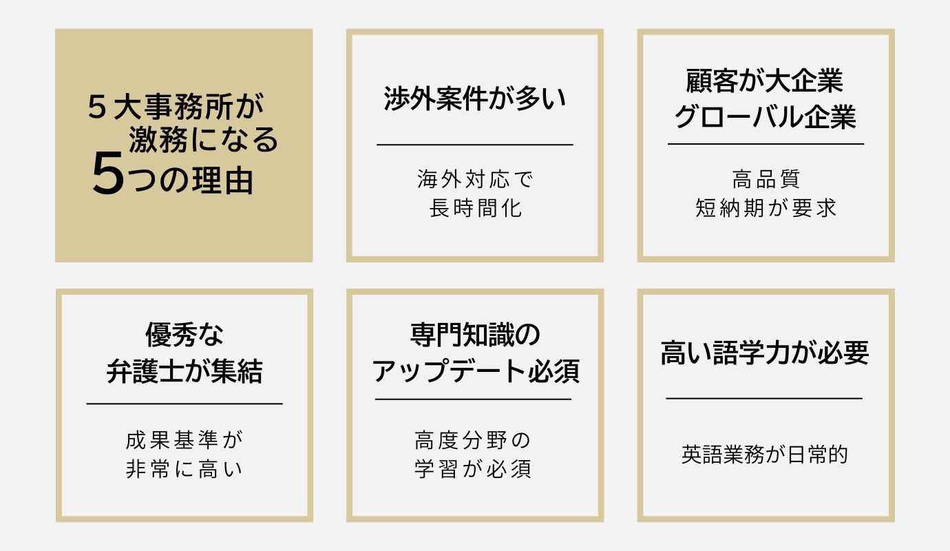 よって、5大法律事務所はかなりの激務であるといえます。